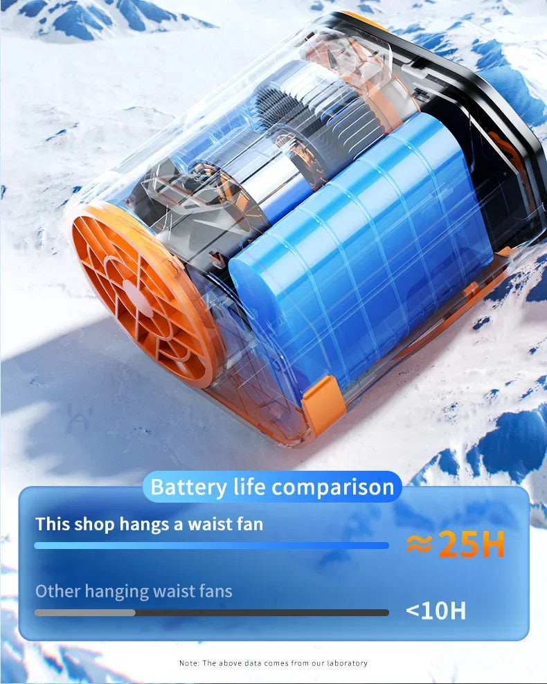 Portable Waist or Neck Hanging Fan – High-Speed, Low-Noise, Rechargeable (25-Hour Battery Life) - Ideal for Indoor, Outdoor & Construction Site Use